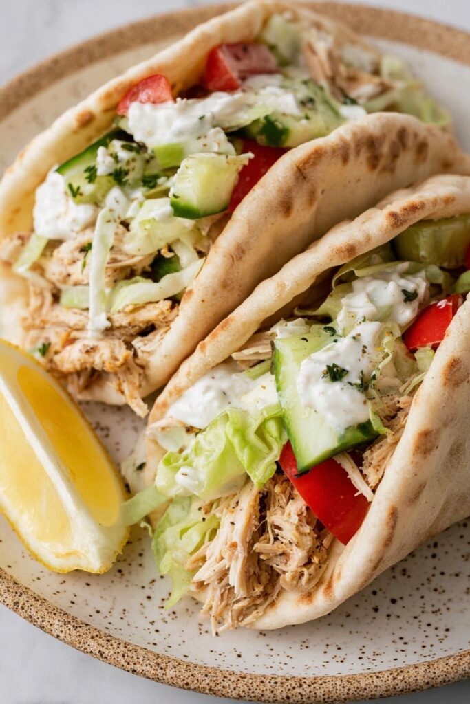 Dieses Crockpot-Rezept für griechische Hähnchen-Gyros bietet zarte, aromatische Hähnchenbrust, die langsam mit klassischen mediterranen Gewürzen wie Zitrone, Oregano und Rotweinessig gegart werden. In warmem Pitabrot serviert und mit frischem Gemüse und cremiger Tzatziki-Soße belegt, bringt dieses einfache Slow Cooker-Menü mit minimalem Aufwand authentische griechische Aromen auf Ihren Tisch.
